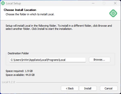 During installation, a popup appears asking to install Microsoft Visual C++ Redistributable components. This is normal – Local needs these to run properly. Click Yes or Install to continue.