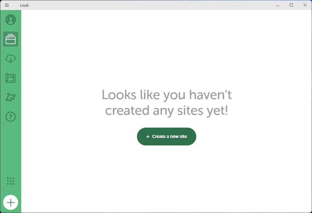 You’re now looking at Local’s main interface. The green “+” button in the bottom left creates new WordPress sites.