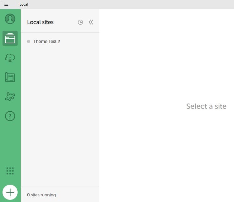 With your computer prepped and ready, open Local and click the green + button to create a new site.