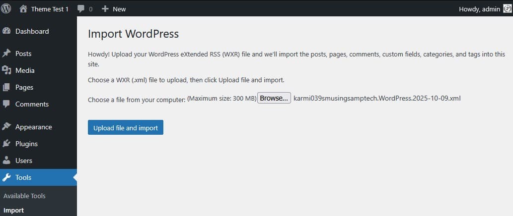 Click Submit, and WordPress will start importing your content. Depending on your site size, this may take a few minutes. When you see the confirmation message, your import is complete — and your test site now mirrors your live site’s posts, pages, and images.