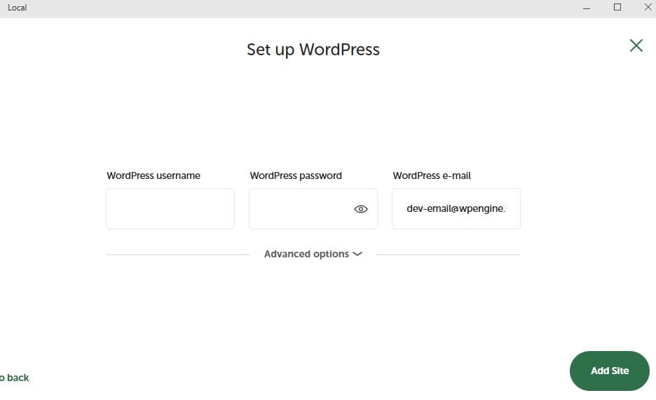 Click Add Site, and Local will create a fresh WordPress installation on your computer or test computer.