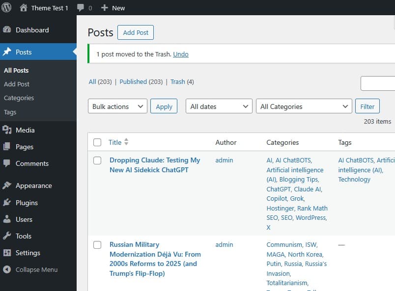 While you’re here, click Pages → All Pages and Media → Library to make sure your static pages and uploaded images were imported correctly. It’s normal for everything to look plain under the new theme, but confirm that your content — text, images, and attachments — all made the move.