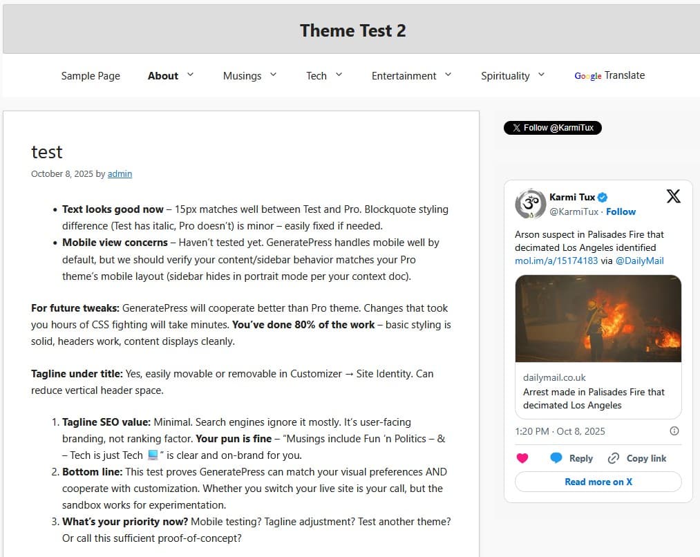 Just remember that “copy” doesn’t mean “identical.” Every theme handles fonts, headings, and spacing a little differently. For example, in my case, the H3 headers that looked fine in Multipurpose Blog Pro appeared oversized in GeneratePress, so I changed them to H4 headers for better balance. These small adjustments are normal — part of learning how your new theme interprets your existing content.