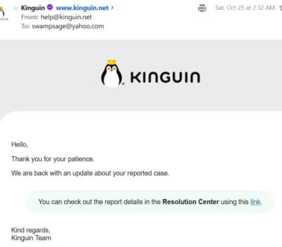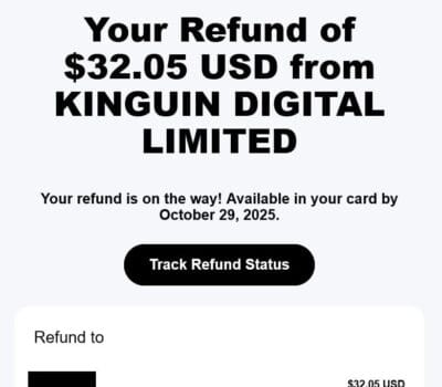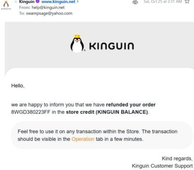 Full refund and store credit were issued by Kinguin one day after this blog post and X thread went live. The week-long delay remained until public exposure forced rapid resolution — coincidence? Adding this addendum for transparency and as proof of the process.