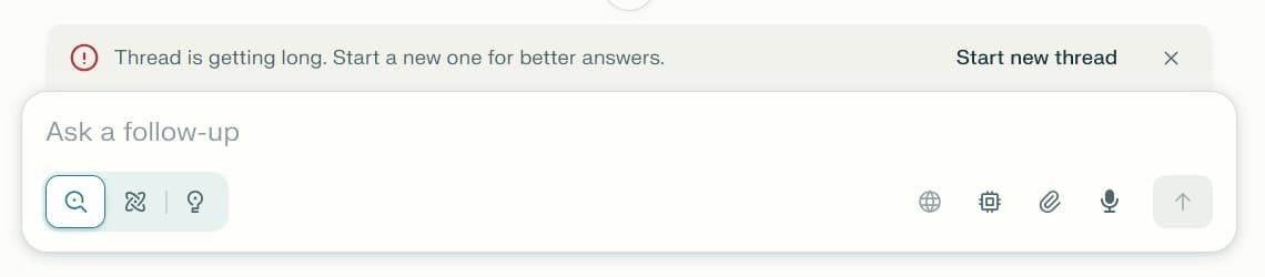 My sidekick explained that “Thread is getting long. Start a new one for better answers.” isn’t a shutdown or danger signal—just a suggestion, not a brick wall. Even after that icon shows up, you can keep going for hours (like we did in this chat) without lost memory or broken context. It’s just a heads-up that super-long threads might eventually tax the system or make answers less sharp, not that you’re about to lose your work.