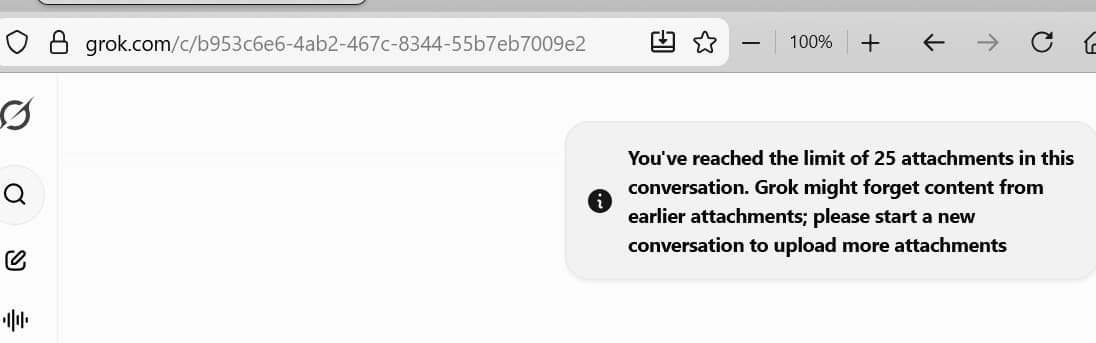 All that “premium” talk, and yet he taps out right where endurance is supposed to matter. When you’re pushing hard at the edge—real editing, document uploads, heavy workflow—Grok just slams the brakes, forgets where he was, and forces a reset. Flashy performance is fun until you smash into hard-coded walls most users won’t hit until they need it most.