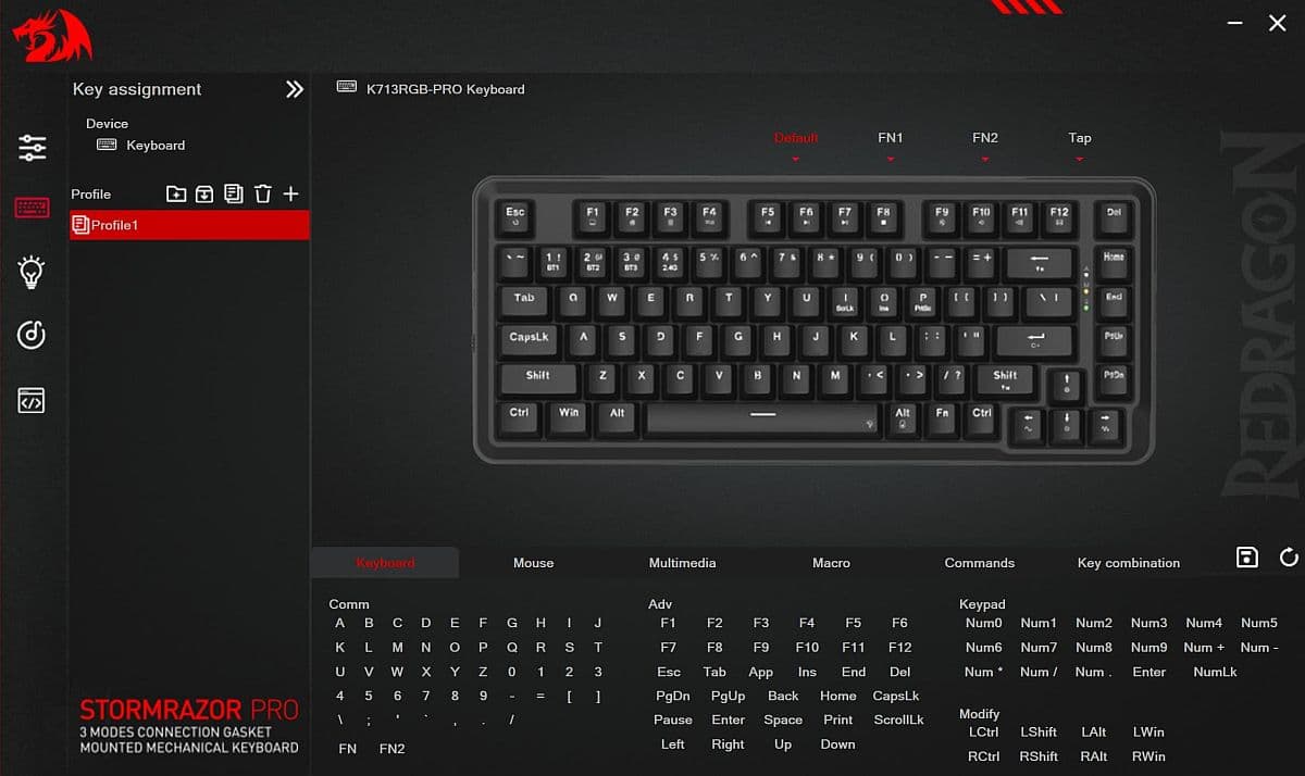 Redragon K713-RGB-PRO review – software customization interface on Windows with color lighting and key mapping features