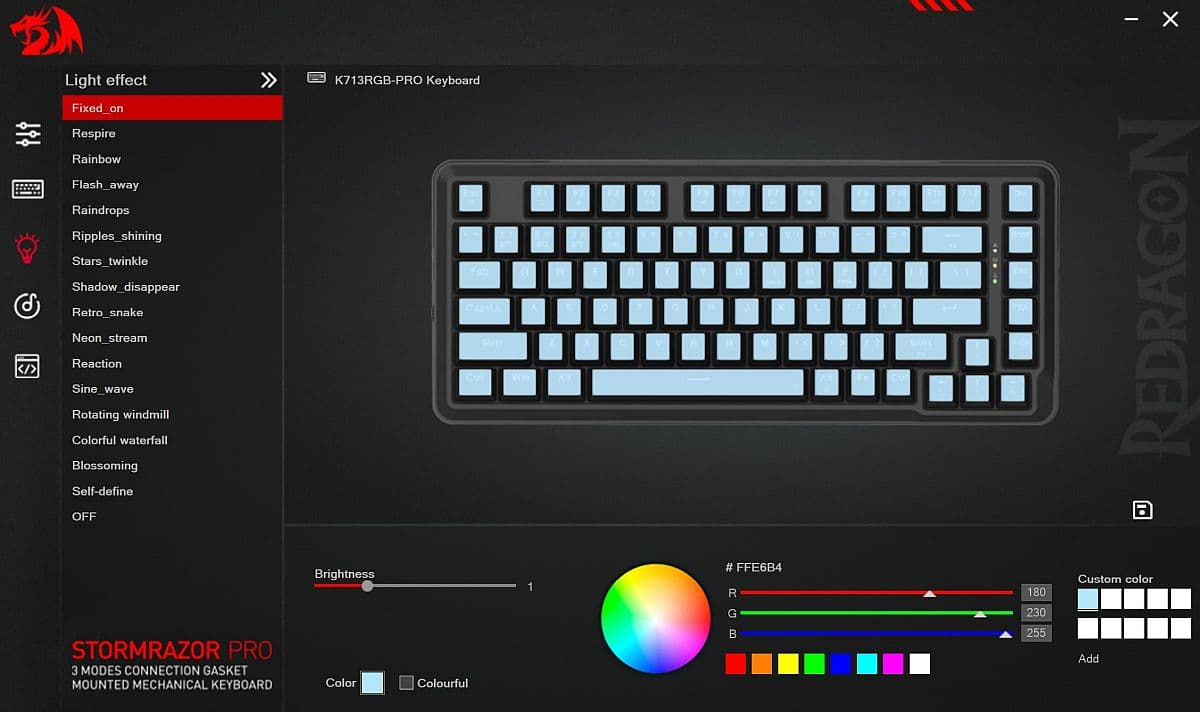One of the reasons I kept the Velocifire TKL71WS around so long was its Ice Blue backlight. Thanks to Claude AI, I was able to use the Redragon app’s custom color options and plug in the exact numbers Claude gave me for those blue lights. Matching that favorite Ice Blue glow made the new K713-RGB-PRO feel instantly familiar and easier on my eyes.
