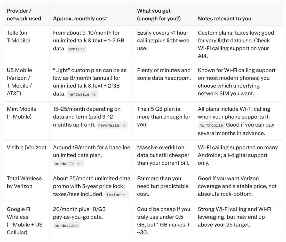 For me, the decision came down to matching the bill to the lifestyle. I’m at home a lot, sitting on a solid WiFi connection, and my phone use is light on calls and mobile data. A big‑carrier plan built around high‑capacity data simply didn’t make sense, no matter how normal it looked on a billboard.